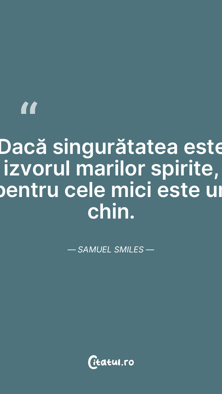 Dacă singurătatea este izvorul marilor spirite, pentru cele mici este un chin. Samuel Smiles