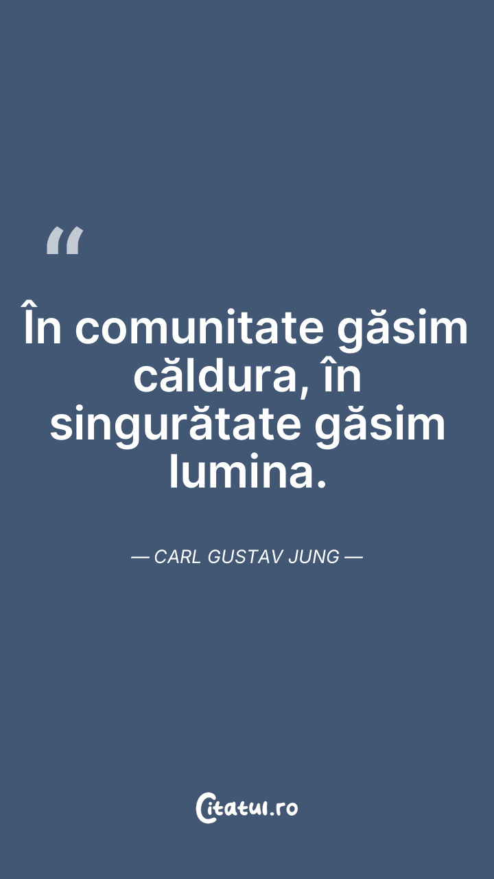 În comunitate găsim căldura, în singurătate găsim lumina. Carl Gustav Jung