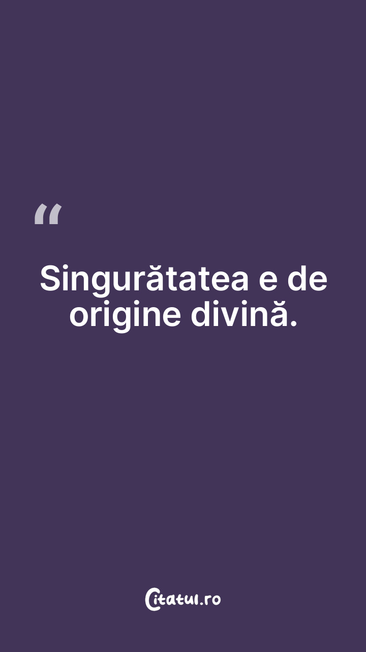 Singurătatea e de origine divină. ... Categorie: citate spiritualitate Dificultate: Foarte ușor de citit! Votează: ★ ★ ★ ★ ★ (0/5 din 0) Distribuiți acest citat? Alegeți platforma preferată: Salvează citatul in telefon/pc Singurătatea e de origine divină. Copiază Favorite Eroare