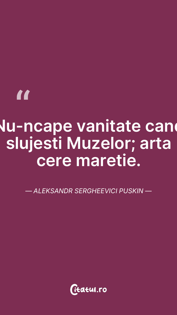 Nu-ncape vanitate cand slujesti Muzelor; arta cere maretie. Aleksandr Sergheevici Puskin