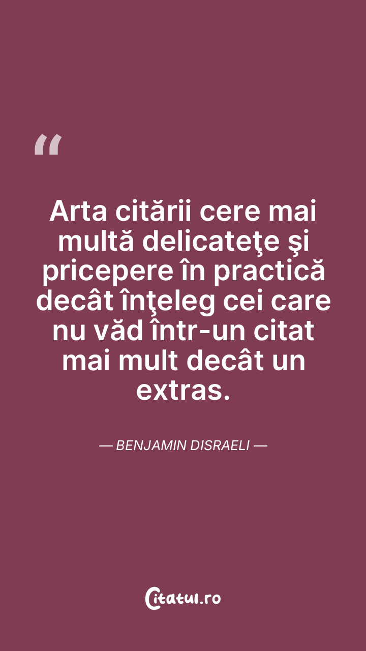Arta citării cere mai multă delicateţe şi pricepere în practică decât înţeleg cei care nu văd într-un citat mai mult decât un extras. Benjamin Disraeli
