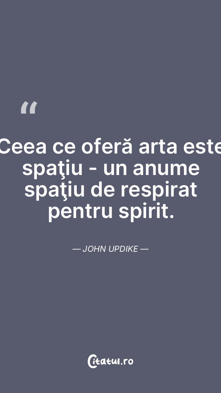 Ceea ce oferă arta este spaţiu - un anume spaţiu de respirat pentru spirit. John Updike