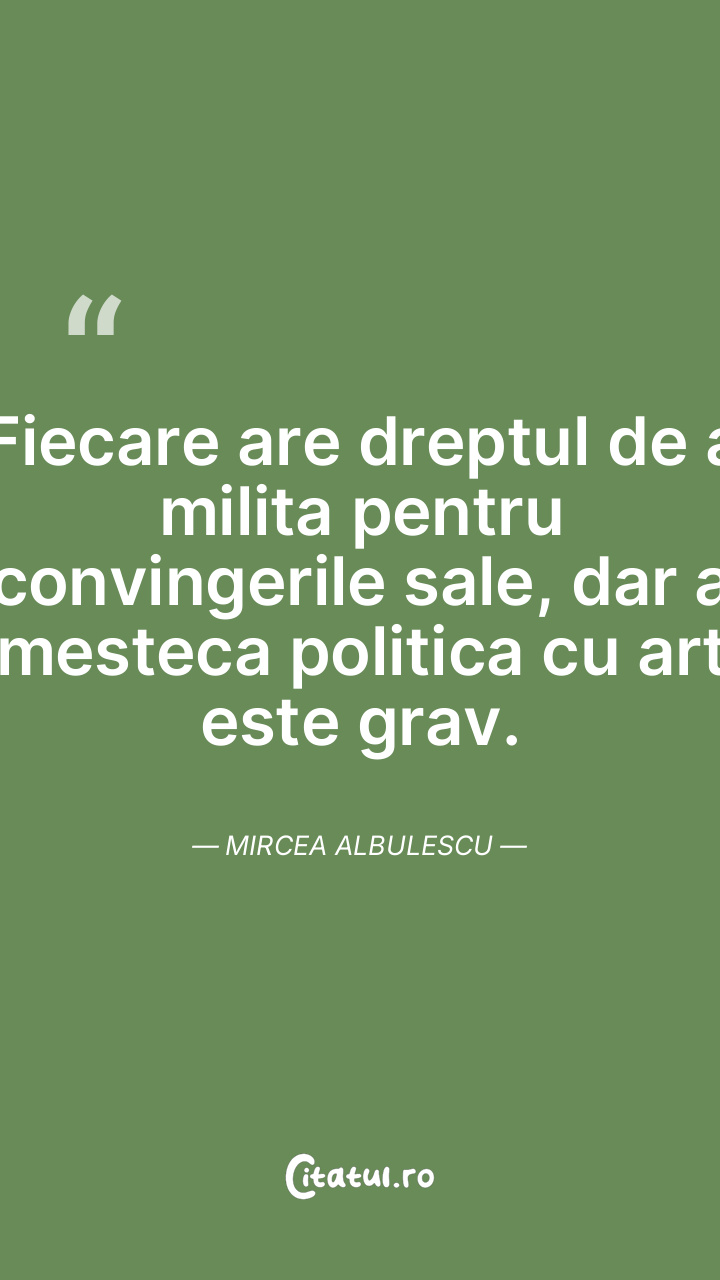 Fiecare are dreptul de a milita pentru convingerile sale, dar a amesteca politica cu arta este grav. Mircea Albulescu