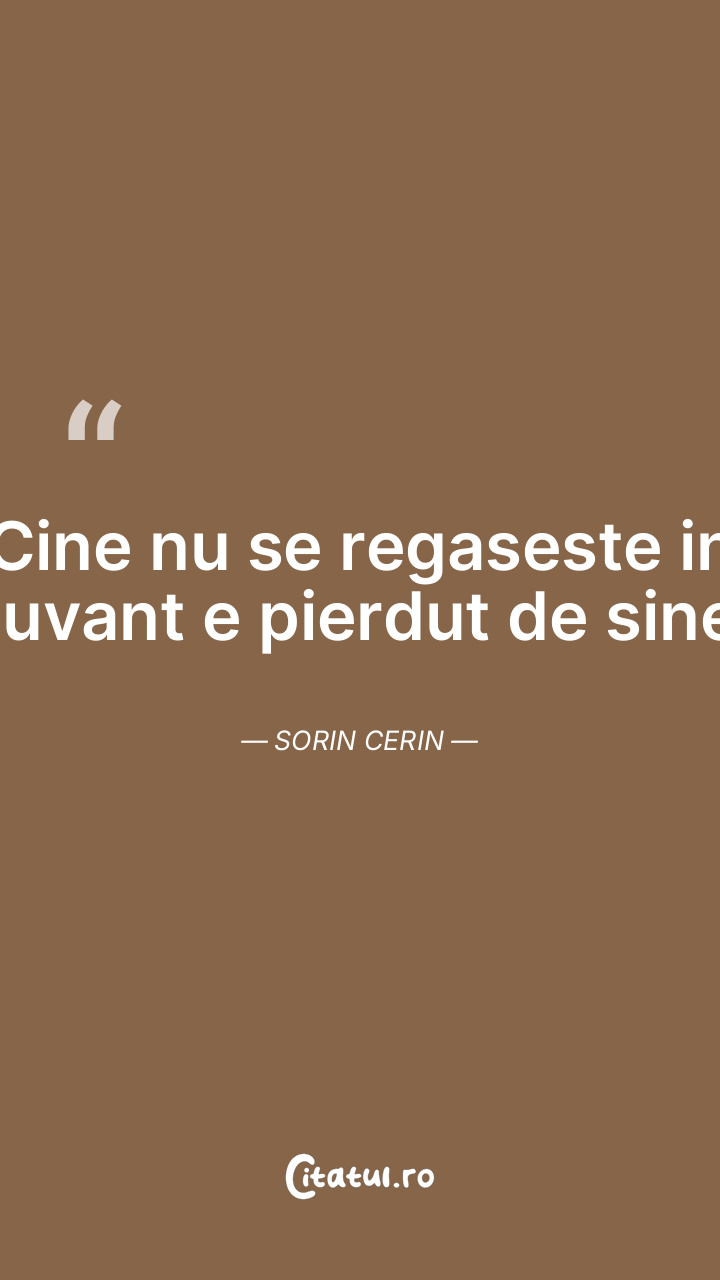 Cine nu se regaseste in cuvant e pierdut de sine. Sorin Cerin