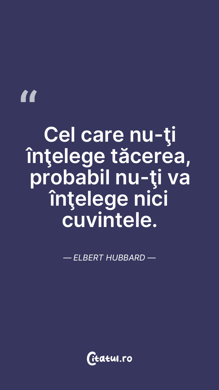 Cel care nu-ţi înţelege tăcerea, probabil nu-ţi va înţelege nici cuvintele. Elbert Hubbard