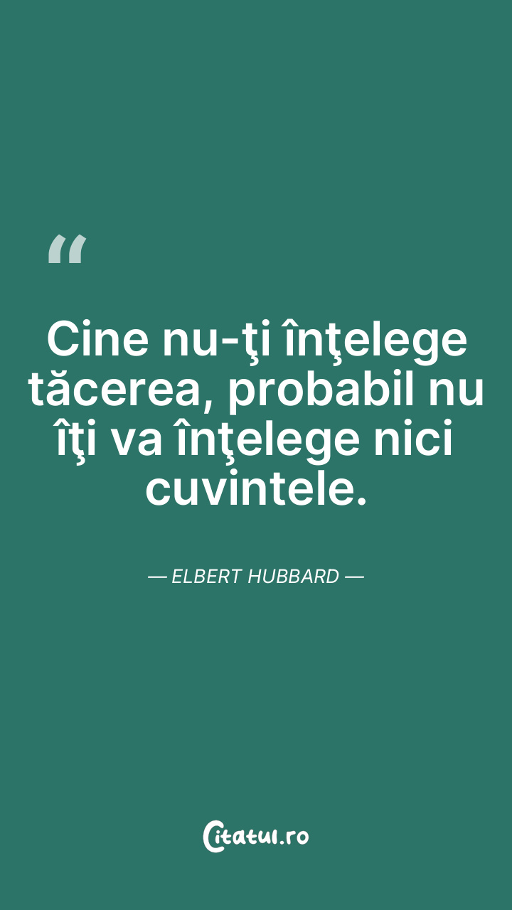 Cine nu-ţi înţelege tăcerea, probabil nu îţi va înţelege nici cuvintele. Elbert Hubbard