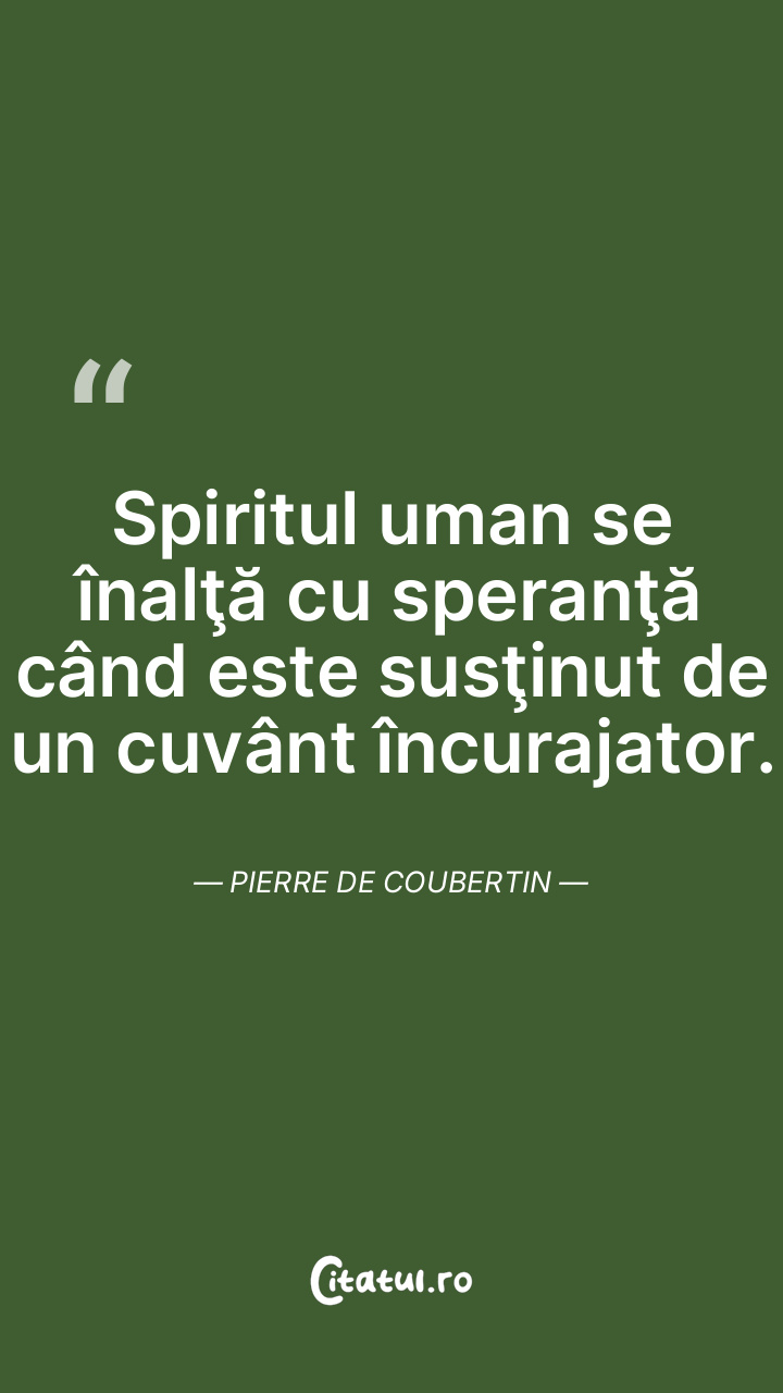 Spiritul uman se înalţă cu speranţă când este susţinut de un cuvânt încurajator. Pierre de Coubertin