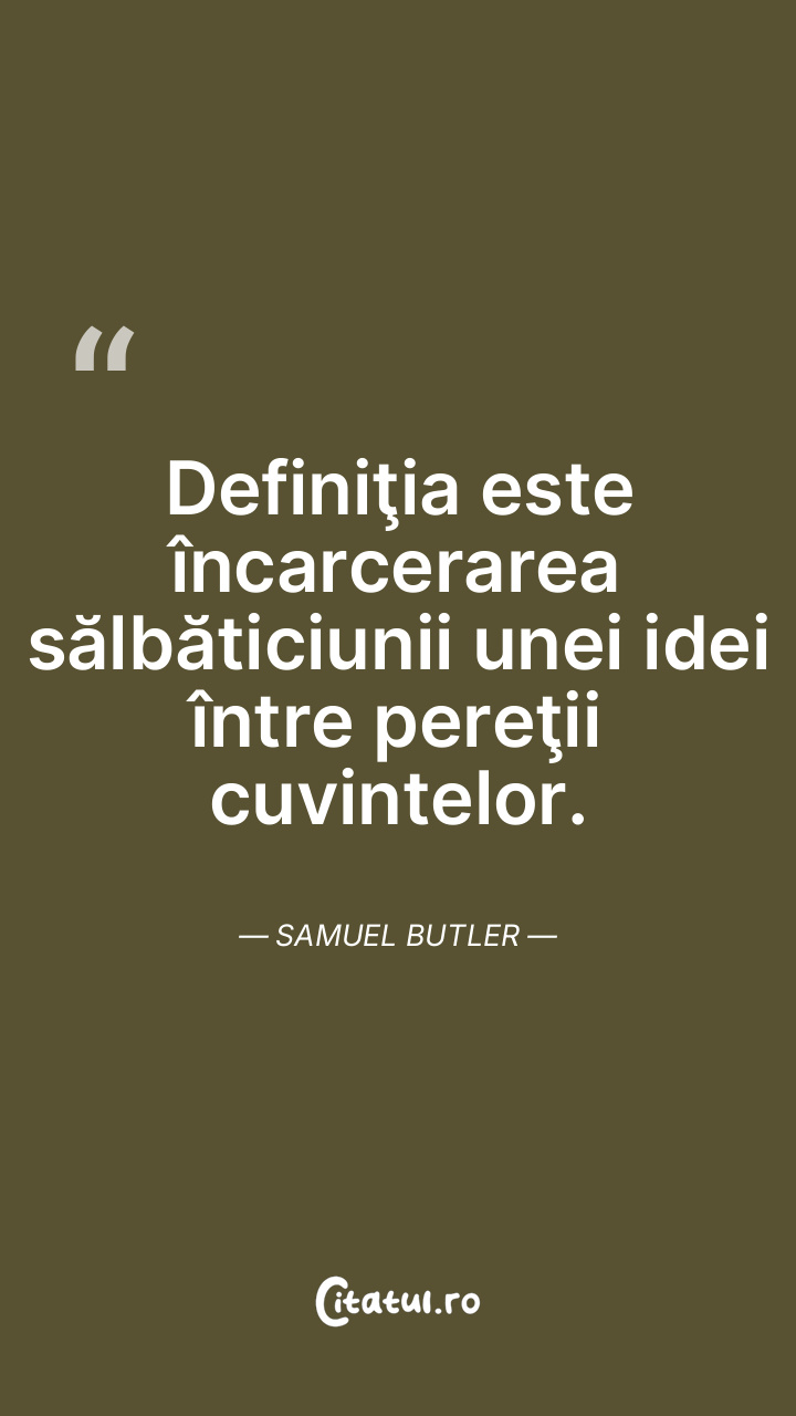 Definiţia este încarcerarea sălbăticiunii unei idei între pereţii cuvintelor. Samuel Butler