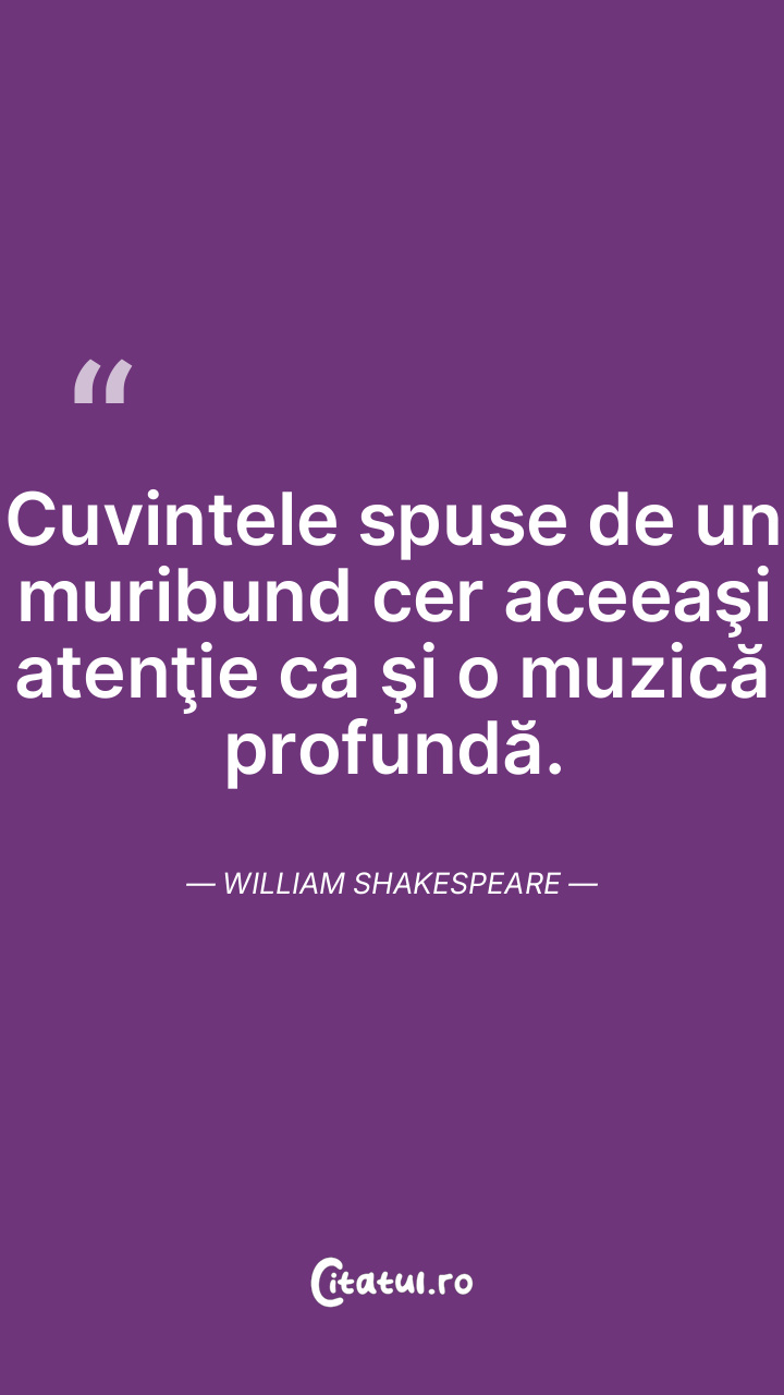 Cuvintele spuse de un muribund cer aceeaşi atenţie ca şi o muzică profundă. William Shakespeare