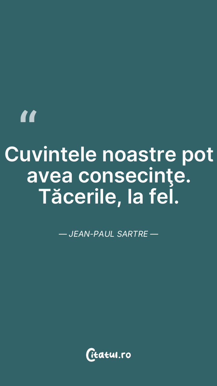 Cuvintele noastre pot avea consecinţe. Tăcerile, la fel. Jean-Paul Sartre
