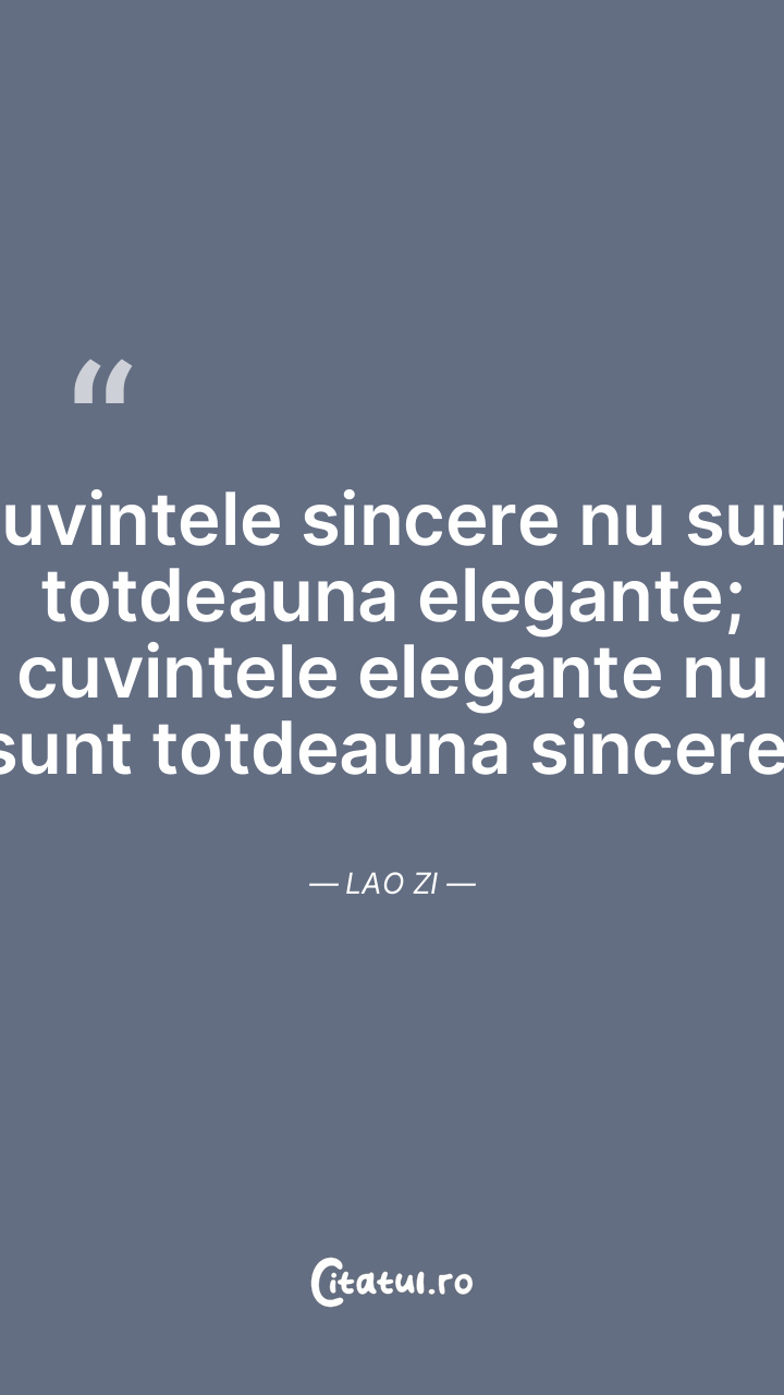 Cuvintele sincere nu sunt totdeauna elegante; cuvintele elegante nu sunt totdeauna sincere. Lao Zi