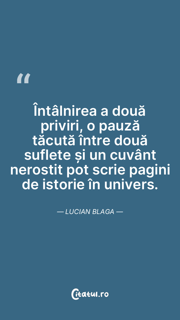 Întâlnirea a două priviri, o pauză tăcută între două suflete și un cuvânt nerostit pot scrie pagini de istorie în univers. Lucian Blaga