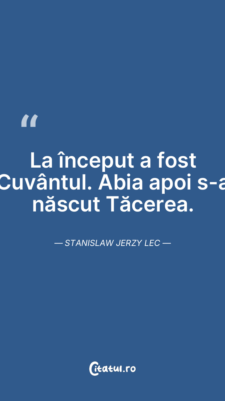 La început a fost Cuvântul. Abia apoi s-a născut Tăcerea. Stanislaw Jerzy Lec