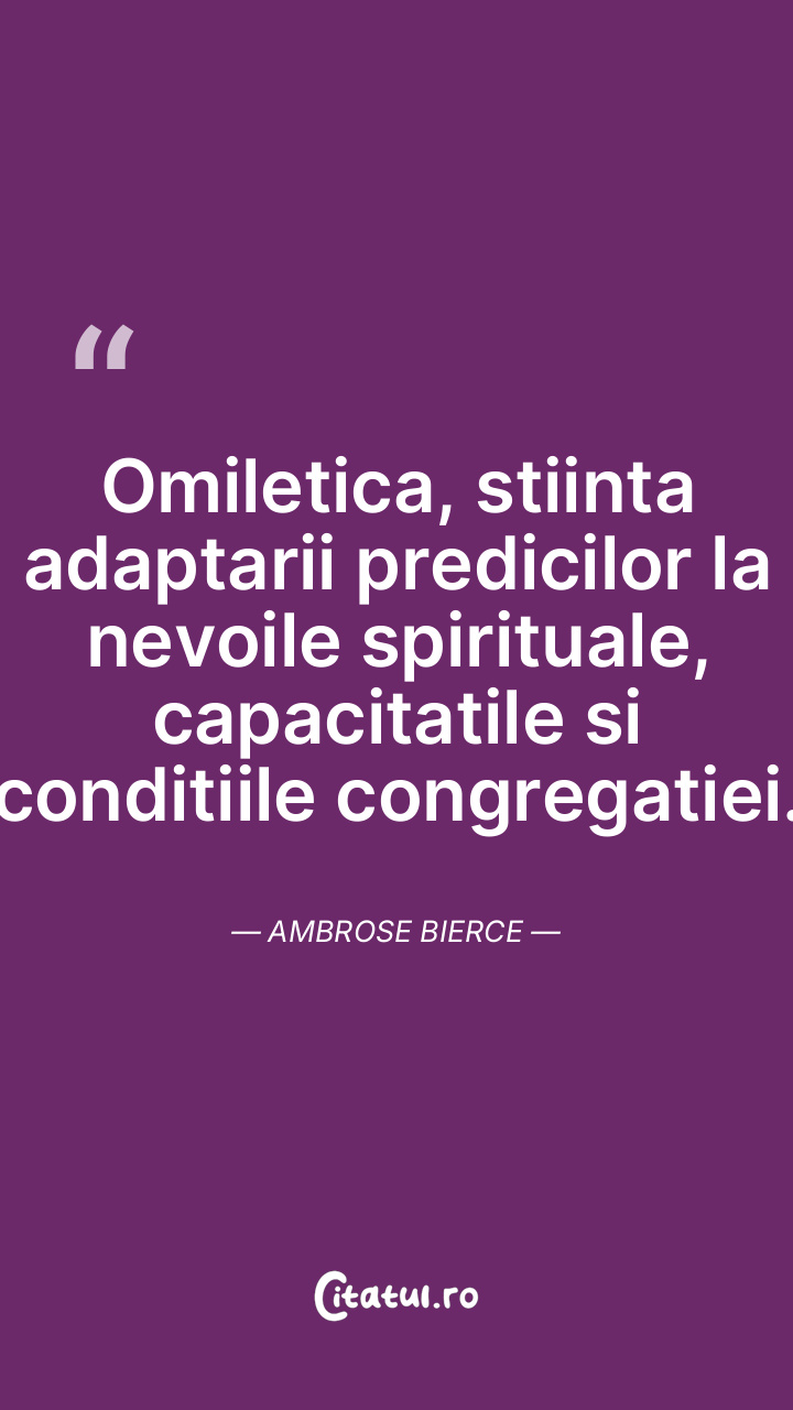 Omiletica, stiinta adaptarii predicilor la nevoile spirituale, capacitatile si conditiile congregatiei. Ambrose Bierce