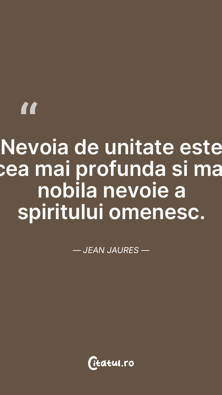 Nevoia de unitate este cea mai profunda si mai nobila nevoie a spiritului omenesc. Jean Jaures