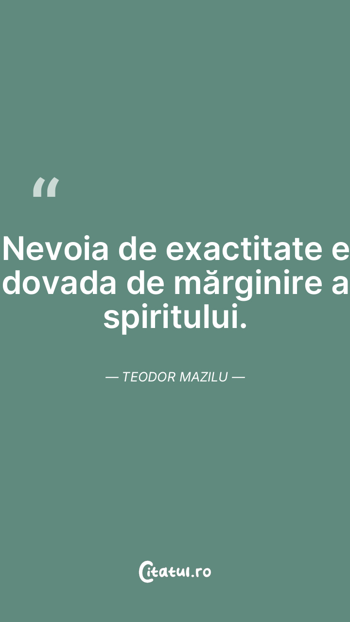 Nevoia de exactitate e dovada de mărginire a spiritului. Teodor Mazilu