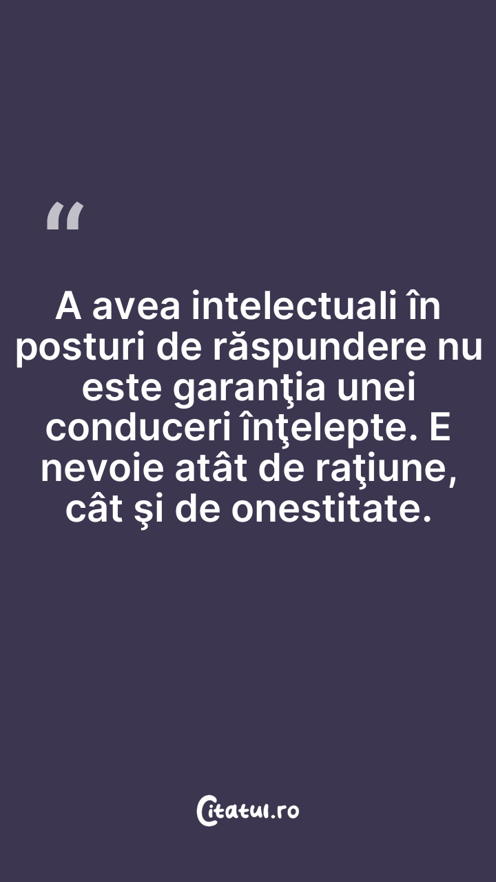 A avea intelectuali în posturi de răspundere nu este garanţia unei conduceri înţelepte. E nevoie atât de raţiune, cât şi de onestitate.