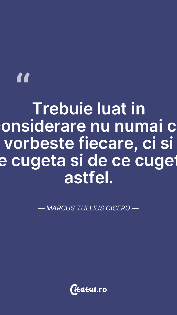 Trebuie luat in considerare nu numai ce vorbeste fiecare, ci si ce cugeta si de ce cugeta astfel. Marcus Tullius Cicero