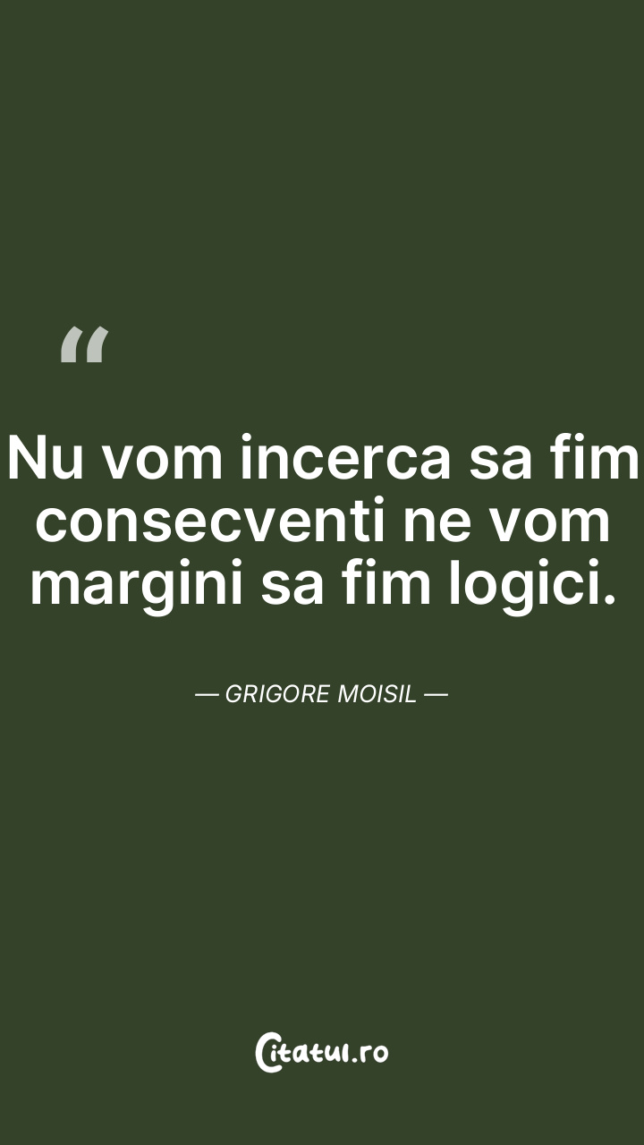 Nu vom incerca sa fim consecventi ne vom margini sa fim logici. Grigore Moisil