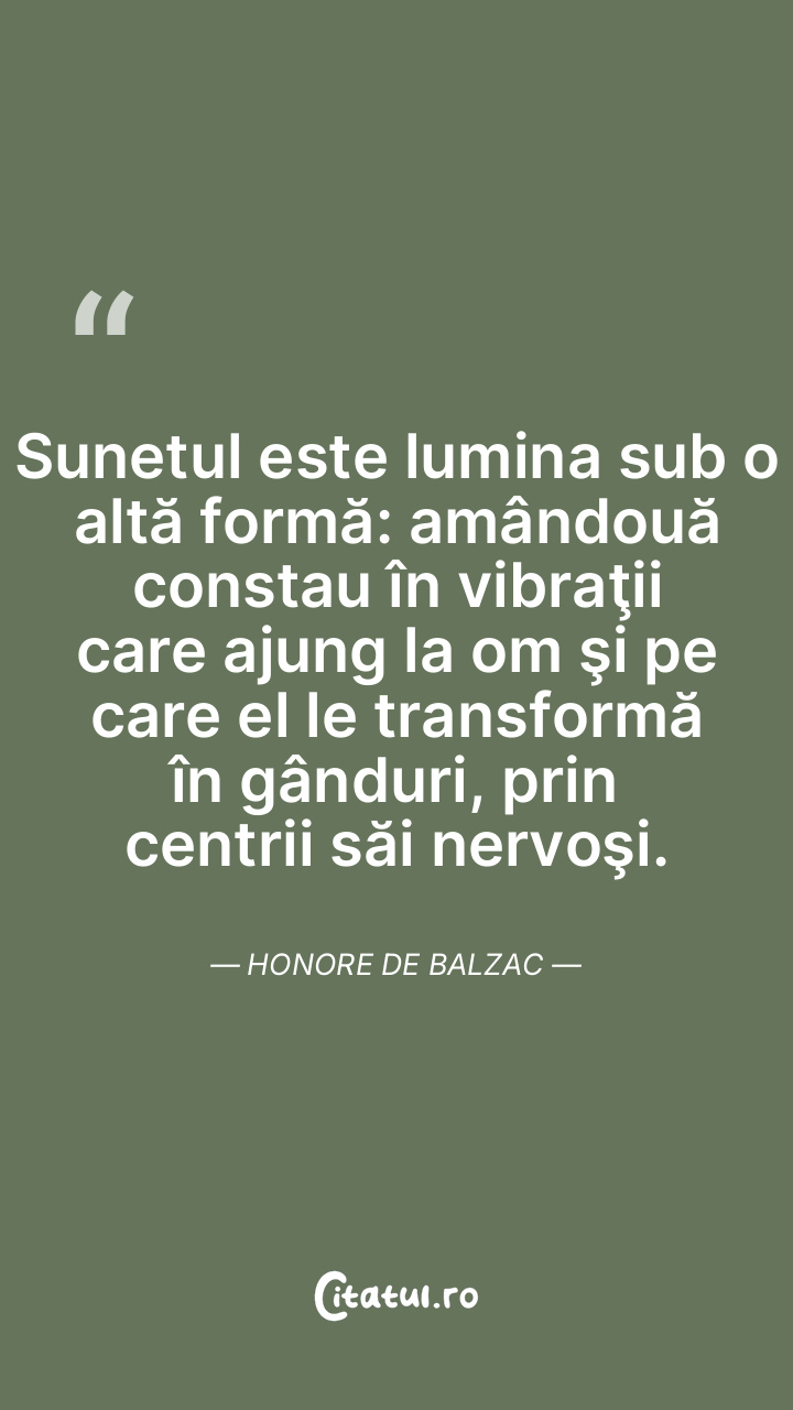Sunetul este lumina sub o altă formă: amândouă constau în vibraţii care ajung la om şi pe care el le transformă în gânduri, prin centrii săi nervoşi. Honore de Balzac