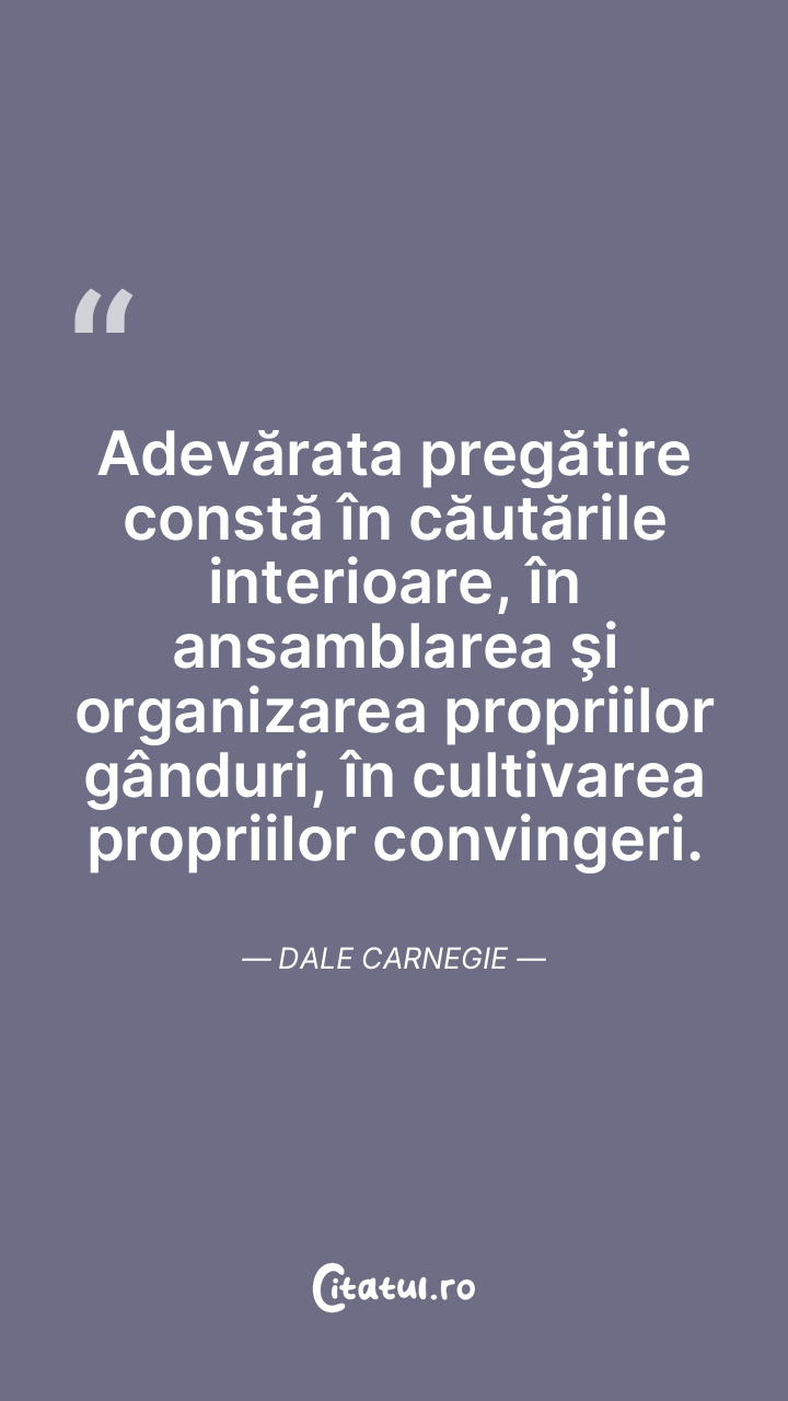 Adevărata pregătire constă în căutările interioare, în ansamblarea şi organizarea propriilor gânduri, în cultivarea propriilor convingeri. Dale Carnegie