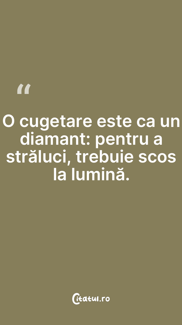 O cugetare este ca un diamant: pentru a străluci, trebuie scos la lumină.