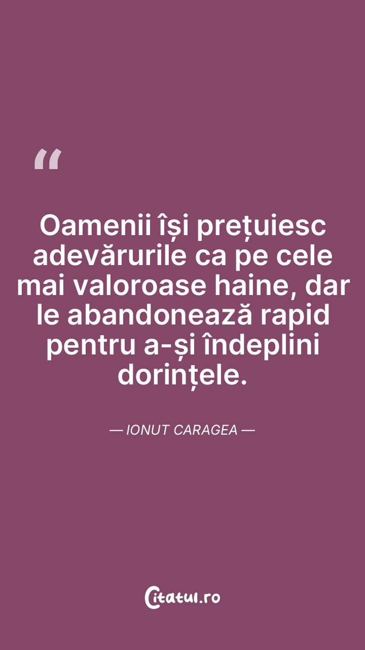 Oamenii își prețuiesc adevărurile ca pe cele mai valoroase haine, dar le abandonează rapid pentru a-și îndeplini dorințele. Ionut Caragea