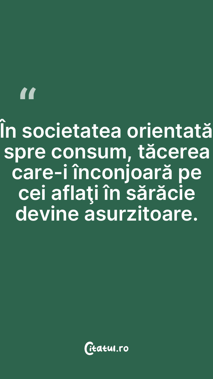 În societatea orientată spre consum, tăcerea care-...