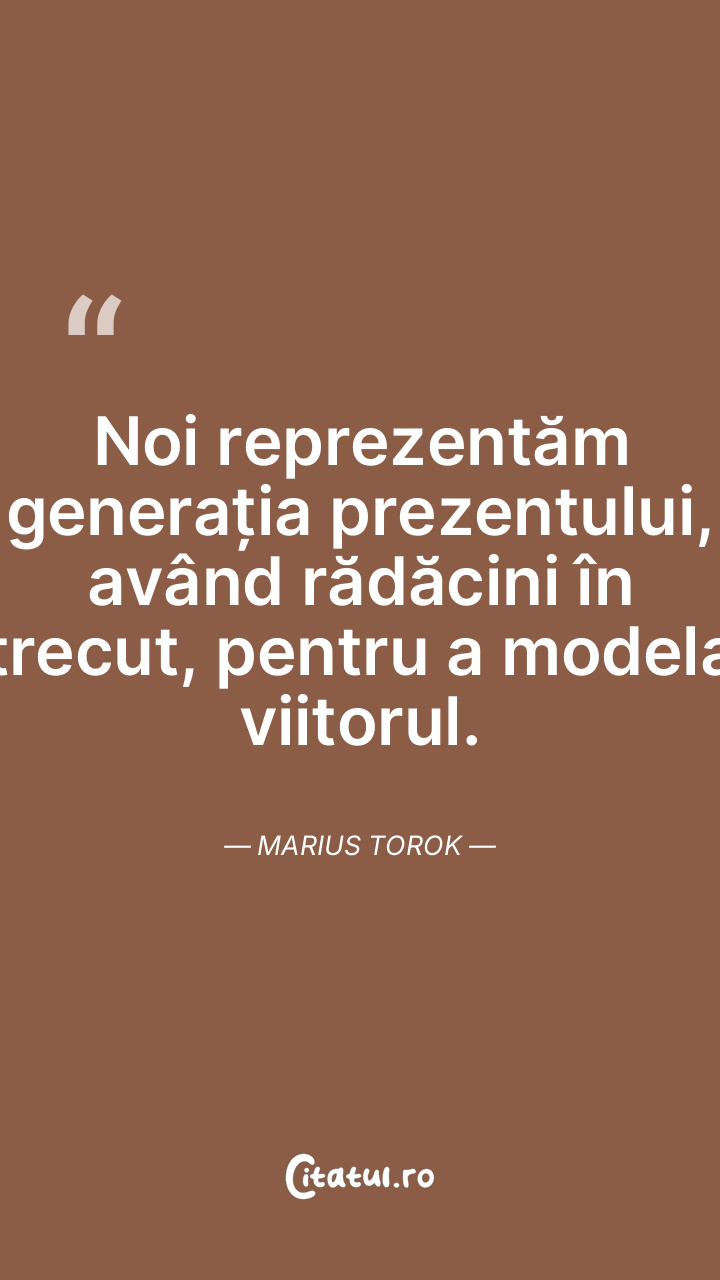 Noi reprezentăm generația prezentului, având rădăcini în trecut, pentru a modela viitorul. Marius Torok