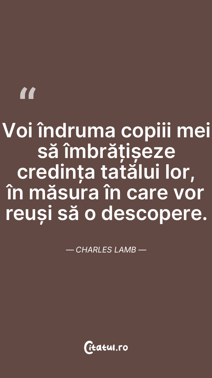 Voi îndruma copiii mei să îmbrățișeze credința tatălui lor, în măsura în care vor reuși să o descopere. Charles Lamb