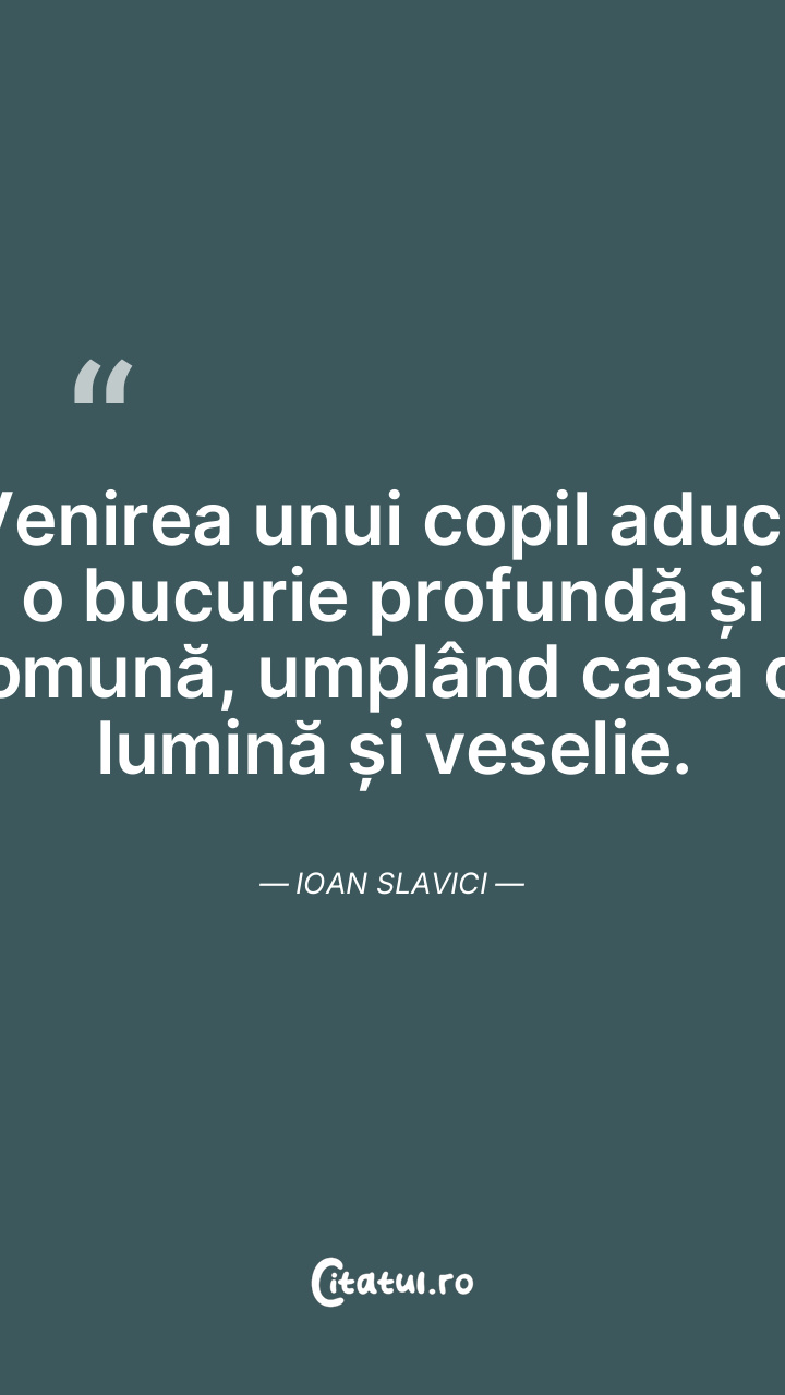Venirea unui copil aduce o bucurie profundă și comună, umplând casa de lumină și veselie. Ioan Slavici