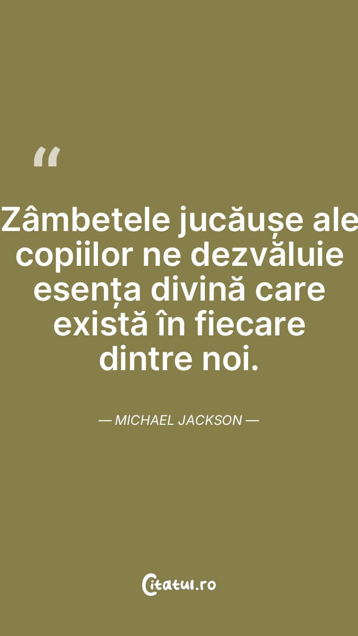 Zâmbetele jucăușe ale copiilor ne dezvăluie esența divină care există în fiecare dintre noi. Michael Jackson