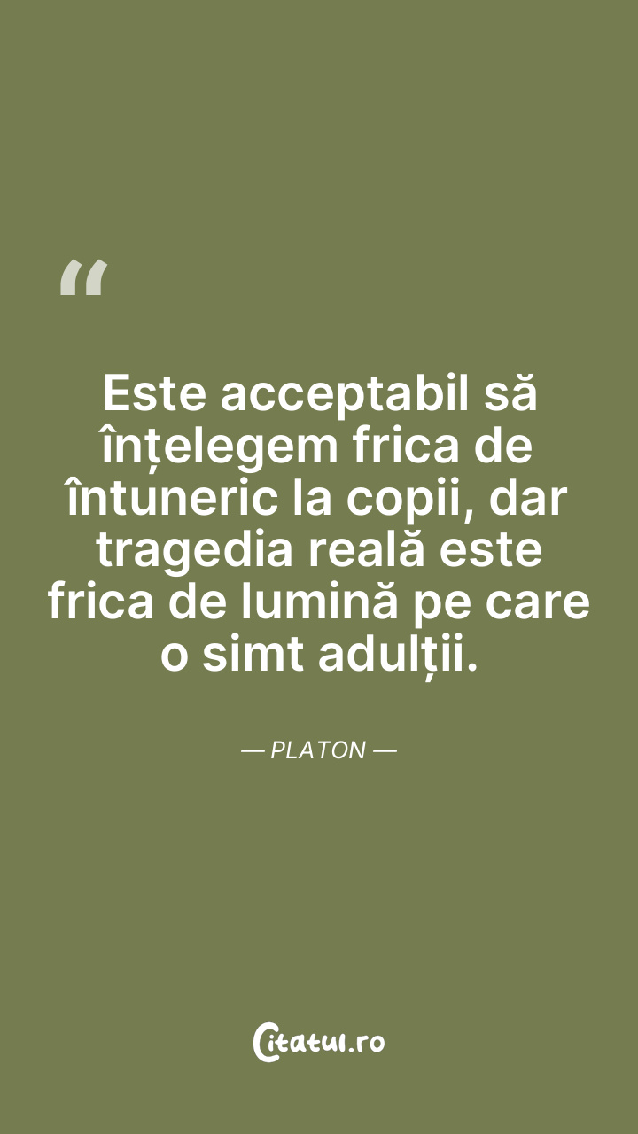 Este acceptabil să înțelegem frica de întuneric la copii, dar tragedia reală este frica de lumină pe care o simt adulții. Platon