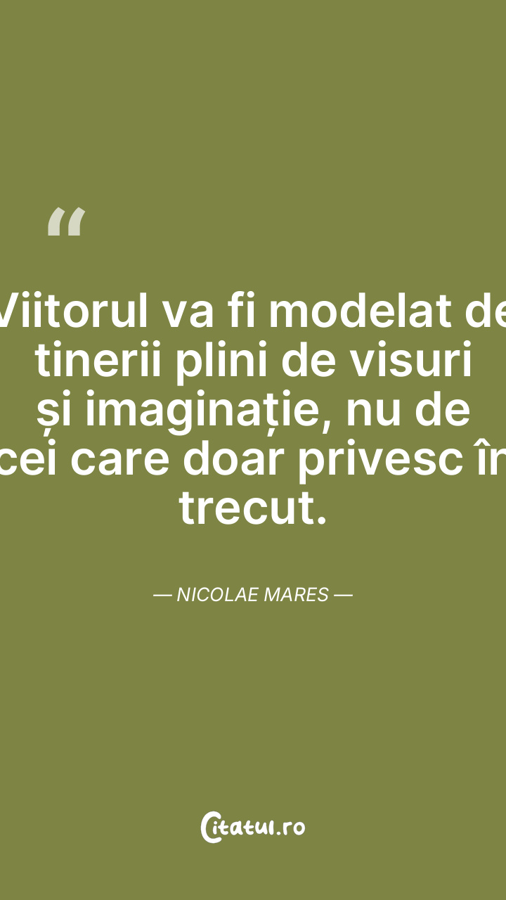Viitorul va fi modelat de tinerii plini de visuri și imaginație, nu de cei care doar privesc în trecut. Nicolae Mares