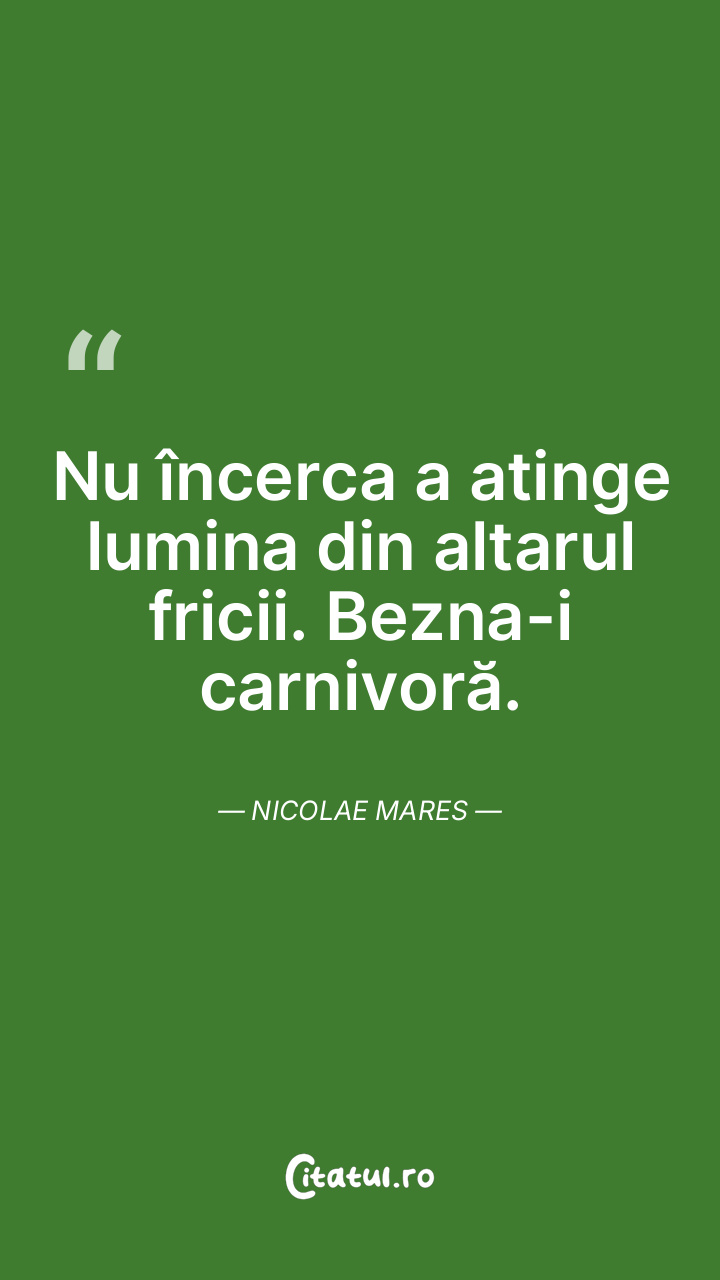 Nu încerca a atinge lumina din altarul fricii. Bezna-i carnivoră. Nicolae Mares