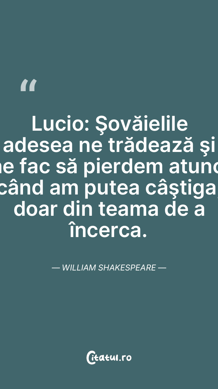 Lucio: Şovăielile adesea ne trădează şi ne fac să pierdem atunci când am putea câştiga, doar din teama de a încerca. William Shakespeare