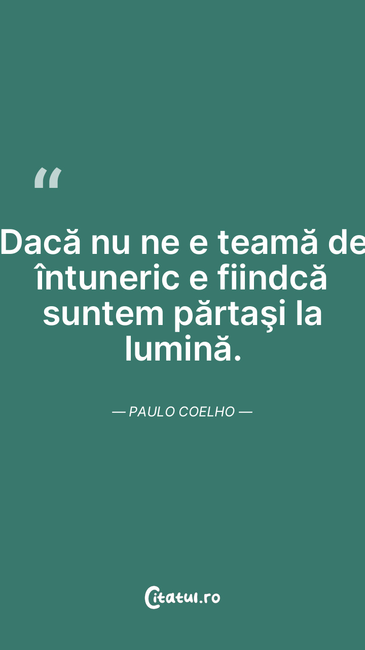 Dacă nu ne e teamă de întuneric e fiindcă suntem părtaşi la lumină. Paulo Coelho