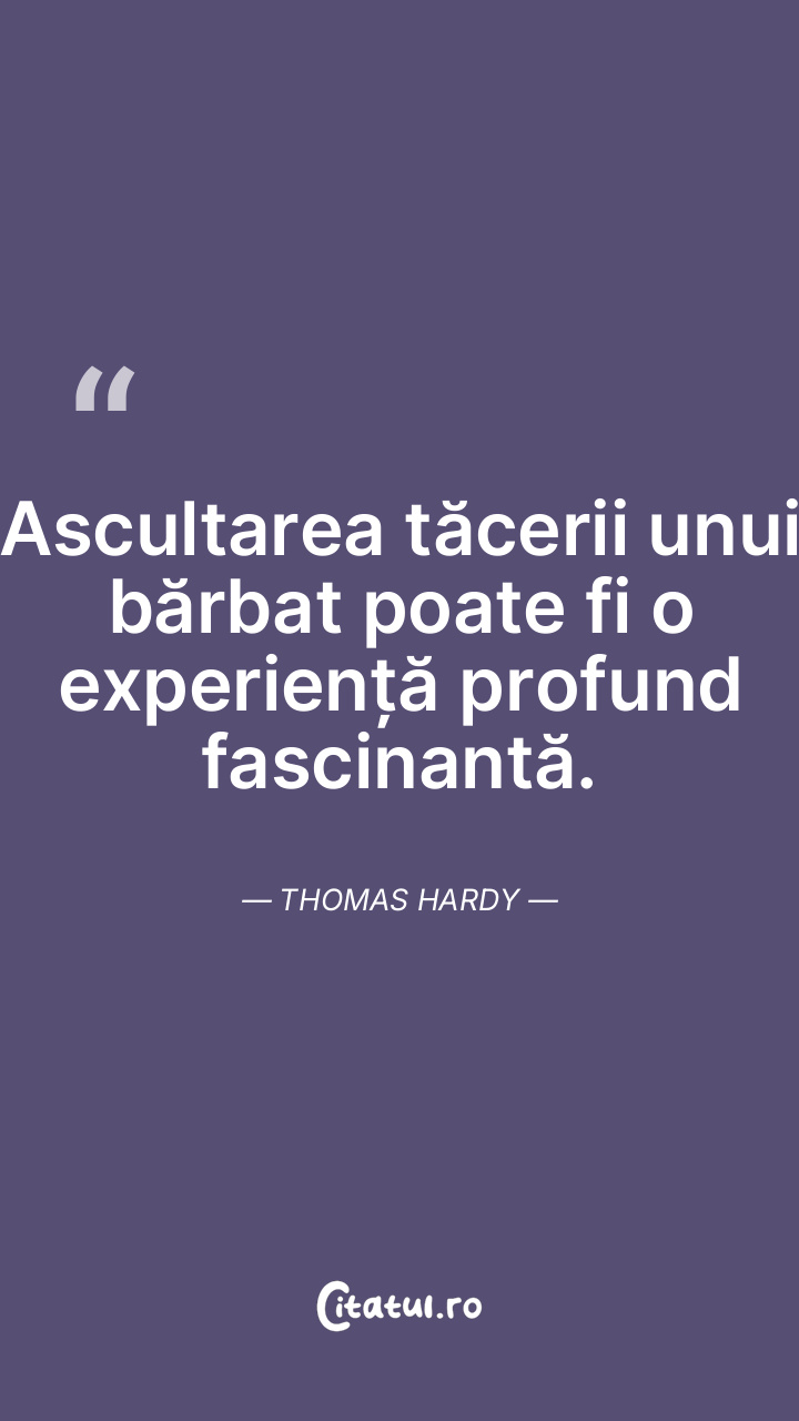 Ascultarea tăcerii unui bărbat poate fi o experiență profund fascinantă. Thomas Hardy