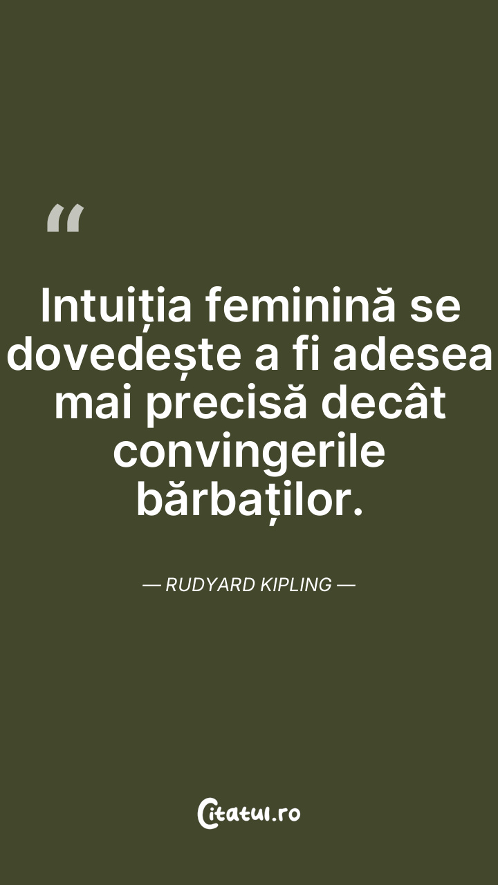 Intuiția feminină se dovedește a fi adesea mai precisă decât convingerile bărbaților. Rudyard Kipling