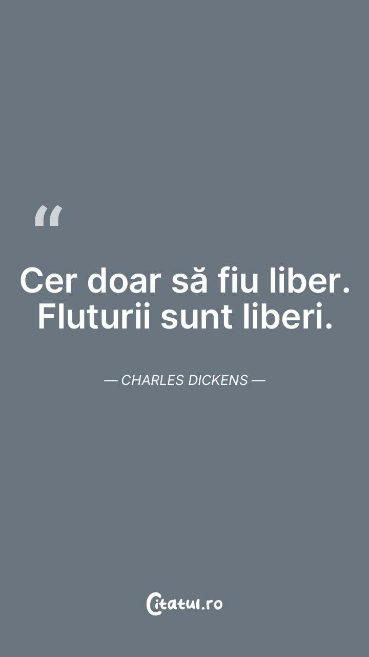 Cer doar să fiu liber. Fluturii sunt liberi. Charles Dickens