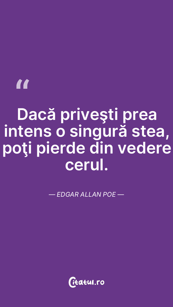 Dacă priveşti prea intens o singură stea, poţi pierde din vedere cerul. Edgar Allan Poe