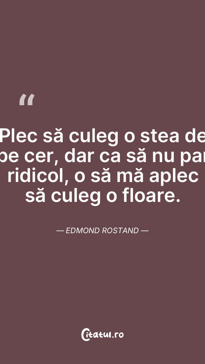 Plec să culeg o stea de pe cer, dar ca să nu par ridicol, o să mă aplec să culeg o floare. Edmond Rostand