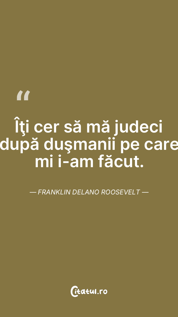 Îţi cer să mă judeci după duşmanii pe care mi i-am făcut. Franklin Delano Roosevelt