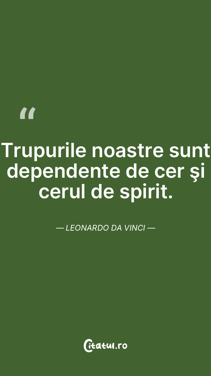 Trupurile noastre sunt dependente de cer şi cerul de spirit. Leonardo da Vinci