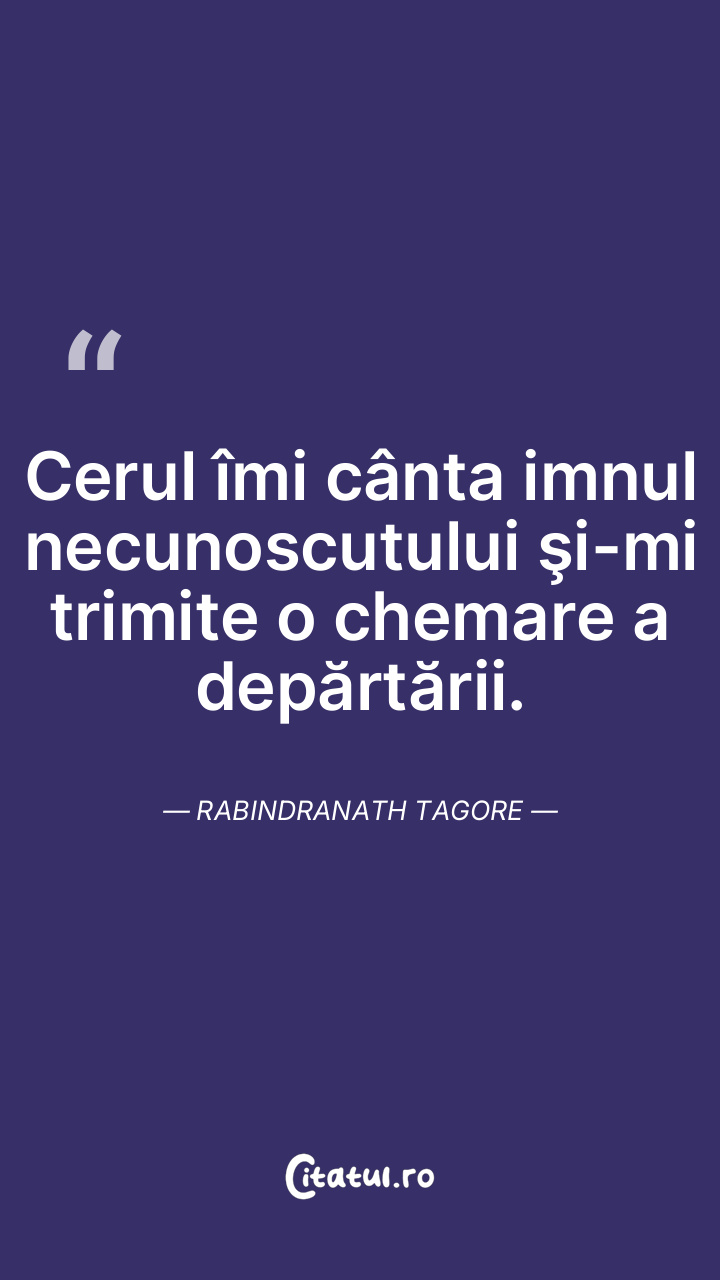 Cerul îmi cânta imnul necunoscutului şi-mi trimite o chemare a depărtării. Rabindranath Tagore