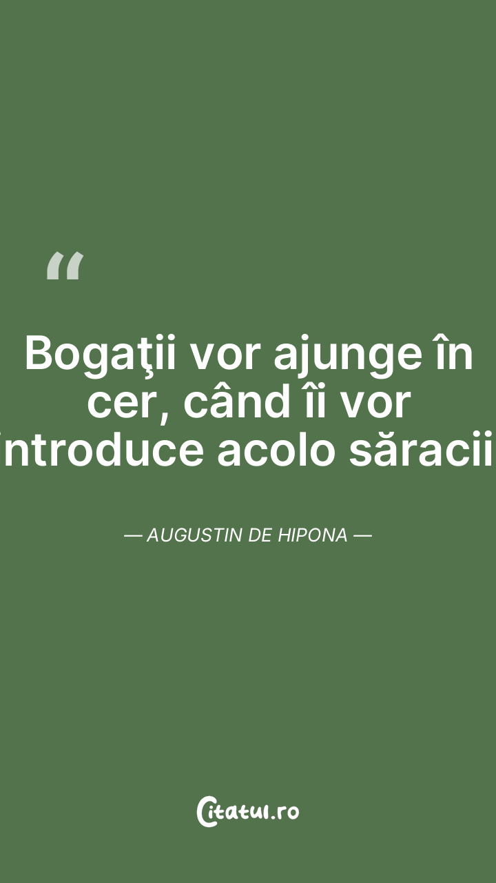 Bogaţii vor ajunge în cer, când îi vor introduce acolo săracii. Augustin de Hipona