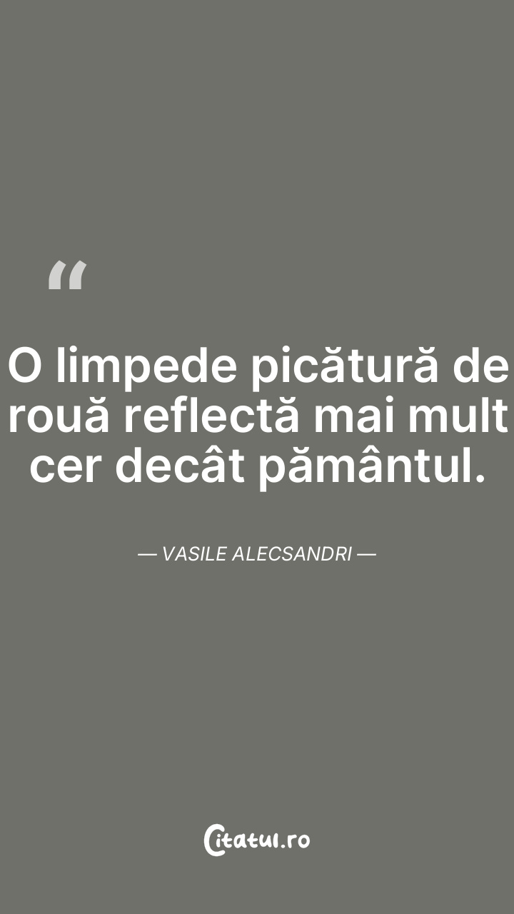 O limpede picătură de rouă reflectă mai mult cer decât pământul. Vasile Alecsandri