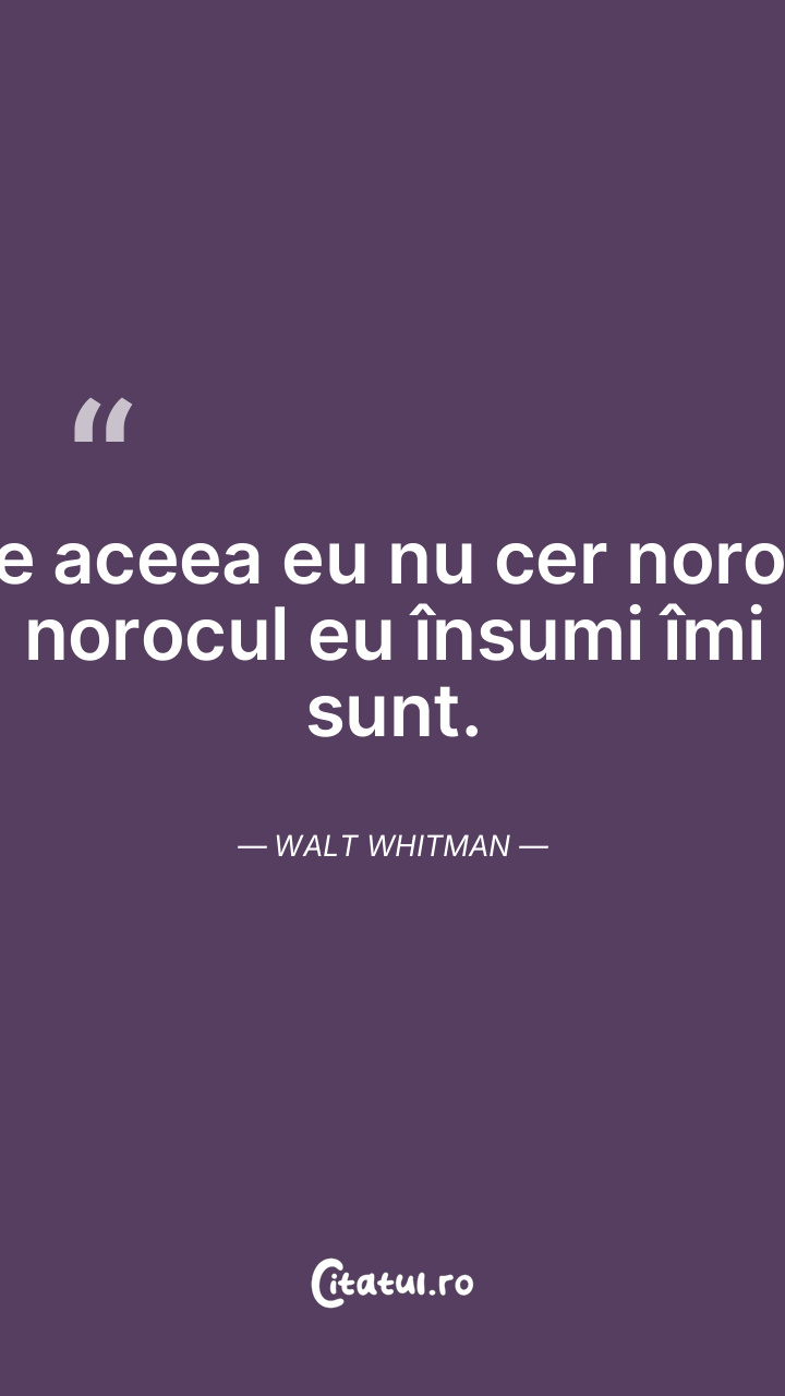 De aceea eu nu cer noroc; norocul eu însumi îmi sunt. Walt Whitman