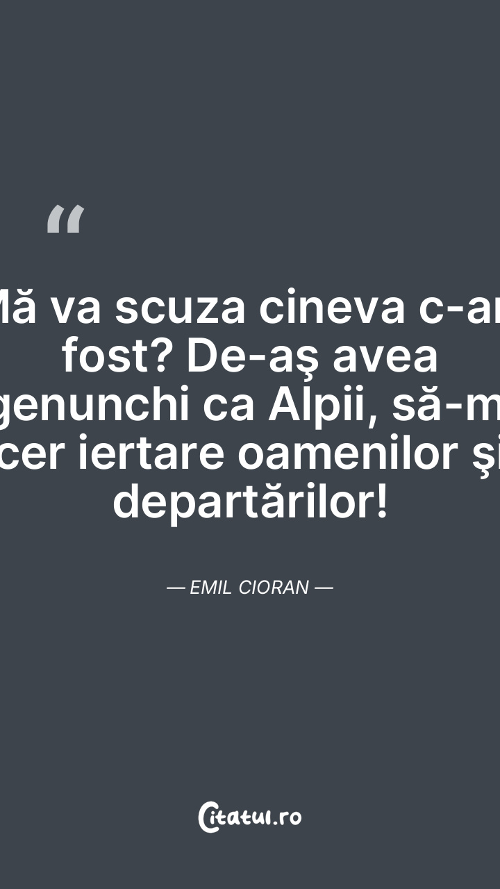 Mă va scuza cineva c-am fost? De-aş avea genunchi ca Alpii, să-mi cer iertare oamenilor şi departărilor! Emil Cioran