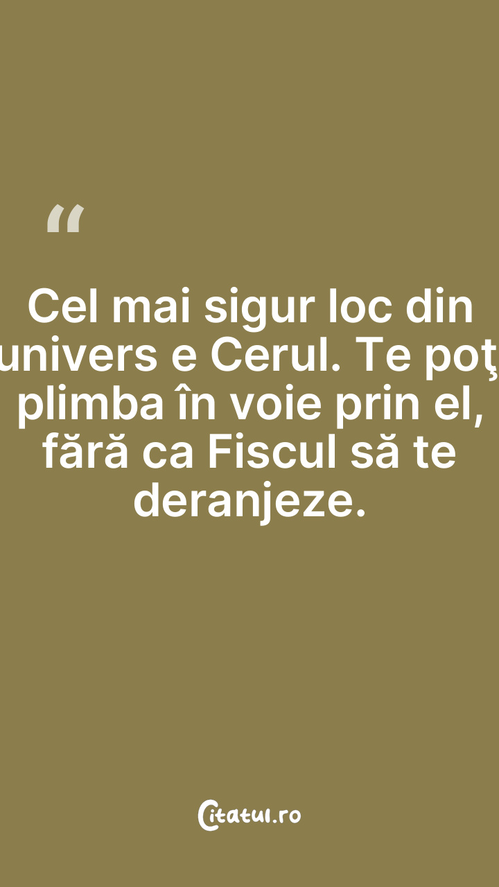 Cel mai sigur loc din univers e Cerul. Te poţi plimba în voie prin el, fără ca Fiscul să te deranjeze.